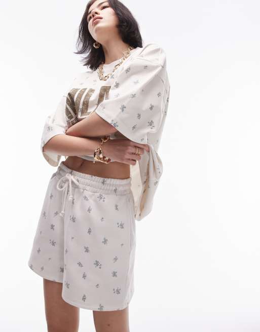 Topshop ditsy floral print sweat shorts in ecru - part of a set