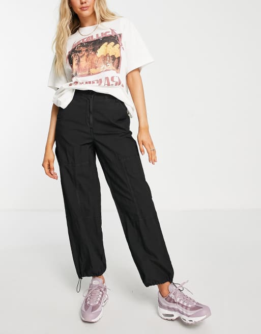 Topshop drawstring cuffed highwaisted cargo pants in black