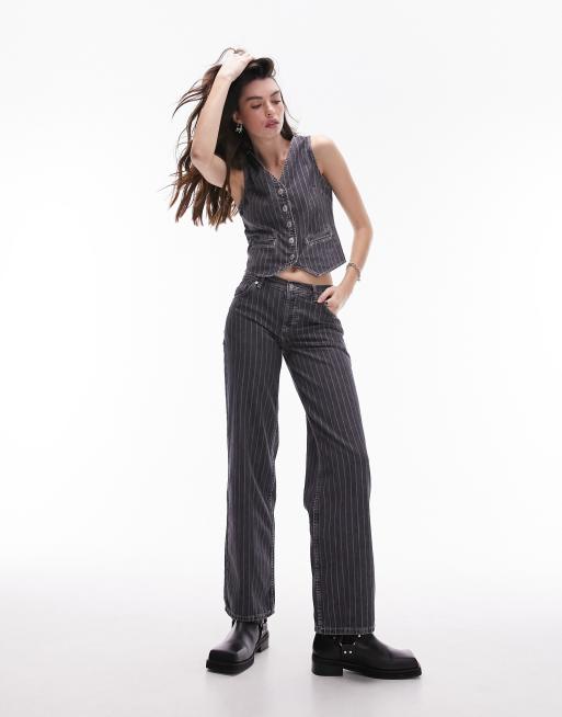 Topshop Ember low rise wide leg pinstripe jean in washed black - part of a set