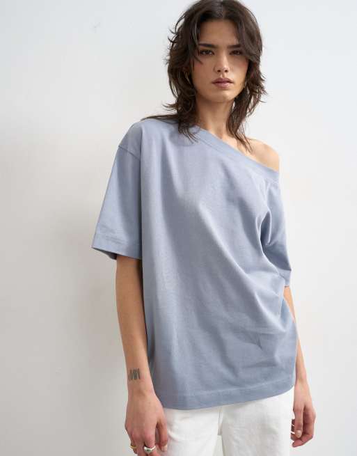 Topshop fallen shoulder T-shirt in dusty blue
