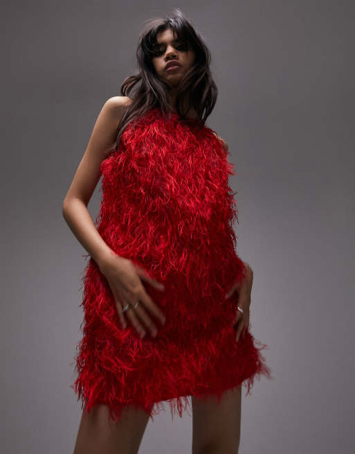 Topshop faux feather mini dress in red