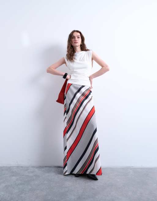 Topshop floor length maxi bias skirt in red and white stripe