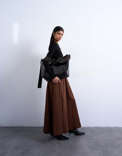 Topshop full maxi skirt in brown with black stripe