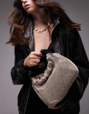 Topshop Gretchen embellished grab bag with satin handle in gold
