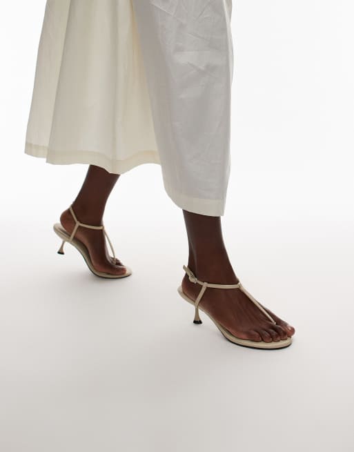 Topshop Imani toe thong mid heel in off-white