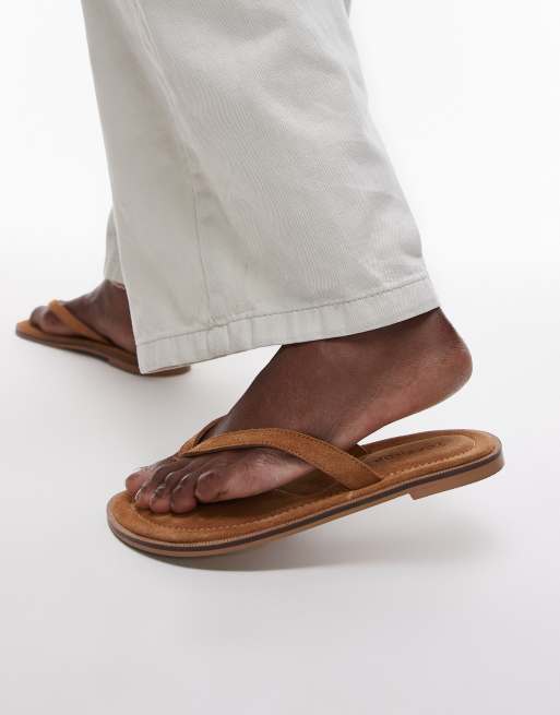 Topshop Jay real suede toe thong flat sandals in tan