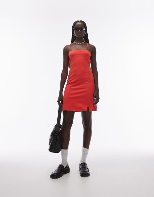 Topshop jersey spaghetti strap mini dress in red