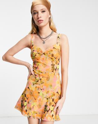 Topshop jersey twist front in large floral mesh mini dress in multi