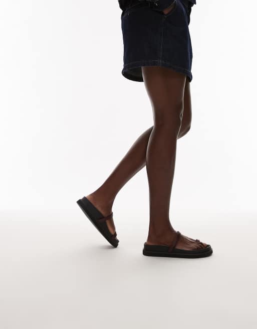 Topshop Josh minimal flat sandal in burgundy
