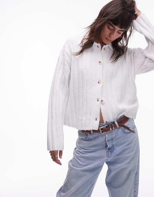 Topshop knit collared cardigan in ivory