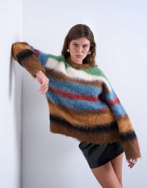 Topshop knit fluffy striped sweater in multi