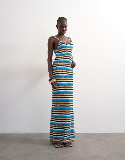 Topshop knit multi stripe maxi dress in blue