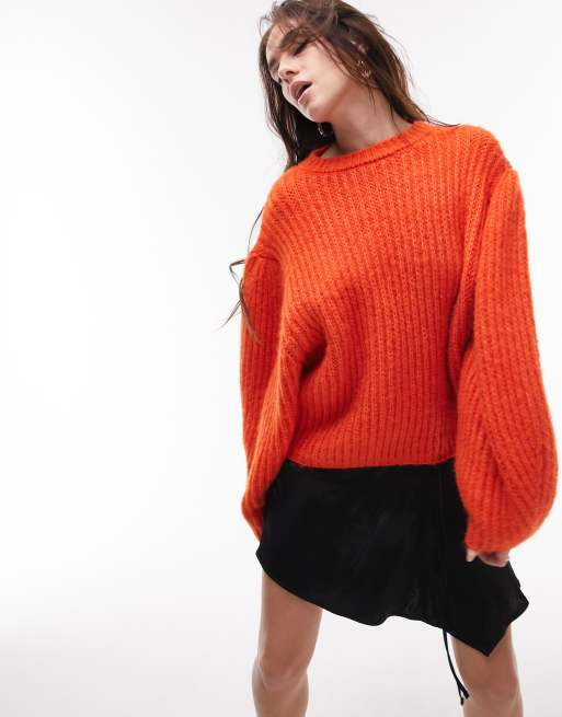 Topshop knit volume sleeve fluffy sweater in orange