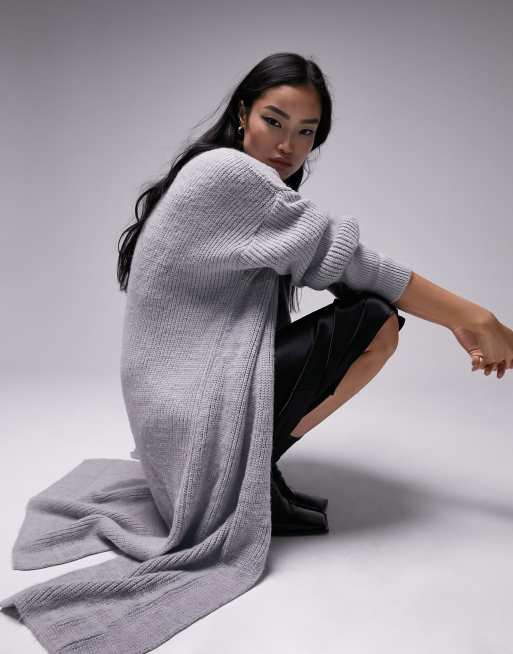 Topshop knitted maxi cardigan in gray
