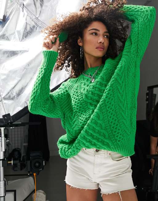 Topshop knitted oversized cable sweater in green