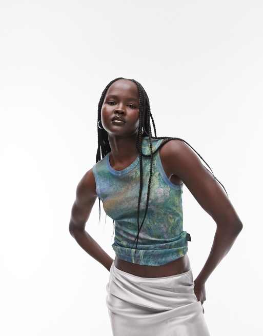 Topshop licensed graphic National Gallery Monet irises mesh tank top in multi