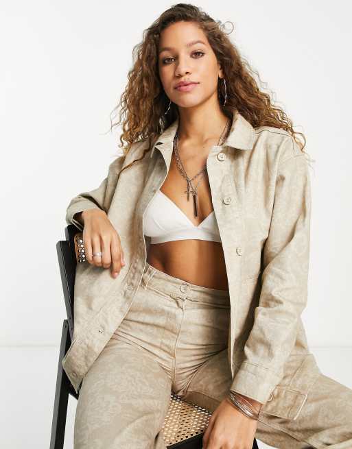 Topshop lightweight subtle floral print jacket in ecru - part of a set