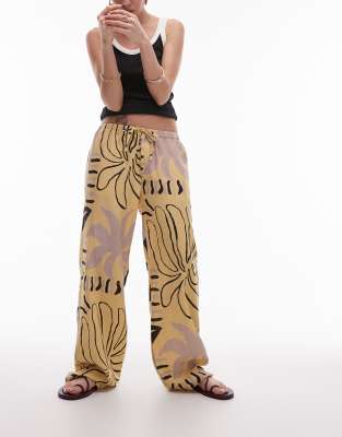 Topshop linen straight leg buttermilk abstract print pants in mono