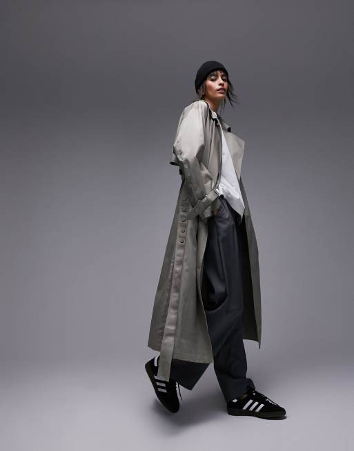 Topshop long-line snap trench coat in khaki