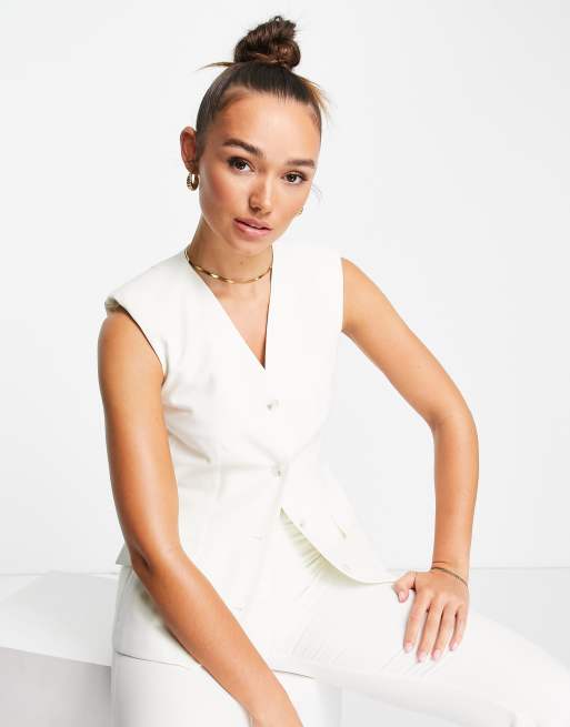 Topshop longline fitted vest in ivory