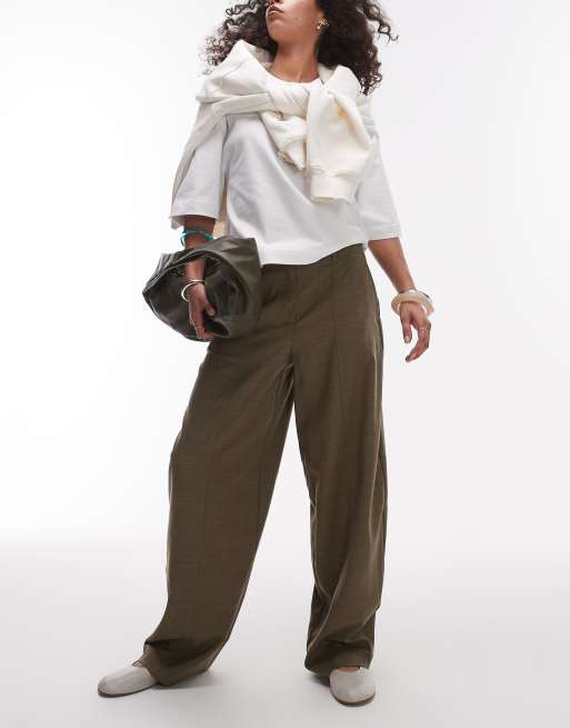 Topshop mid rise balloon leg clean waistband tapered pants in khaki