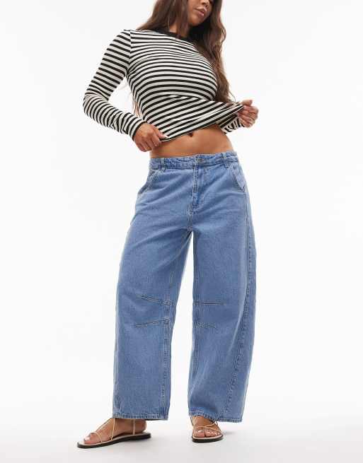 Topshop mid rise side panel barrel leg jeans in bleach