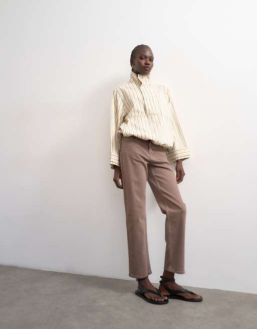 Topshop Orson mid rise comfort straight jeans in otter