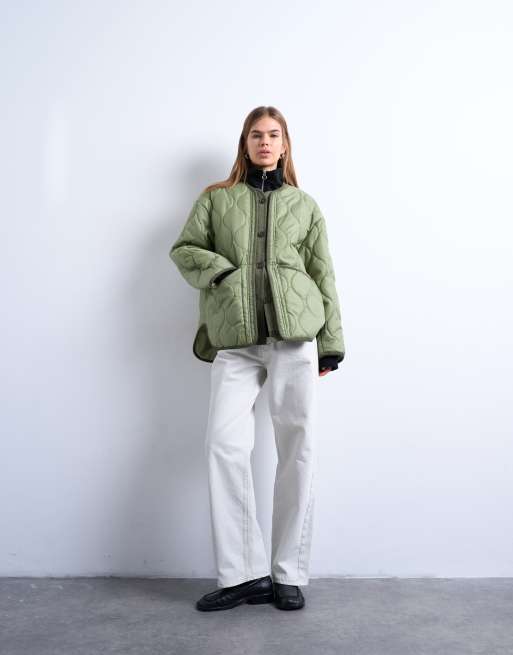 Topshop oversized placket two tone liner jacket in dark khaki green