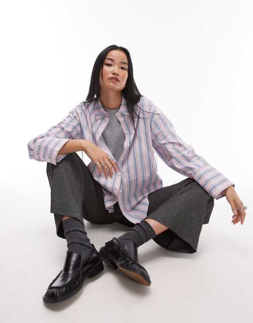 Topshop oversized shirt in pink & blue stripe