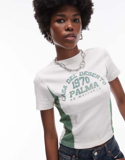 Topshop Palma graphic lace insert tee in white