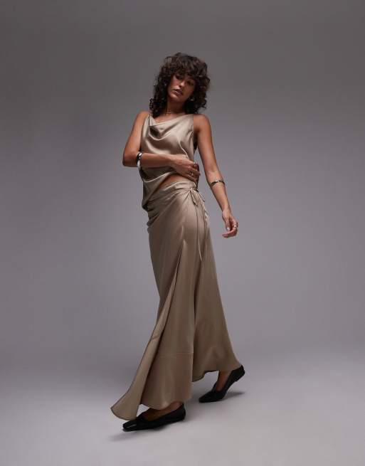 Topshop paneled seam satin wrap maxi skirt in champagne - part of a set
