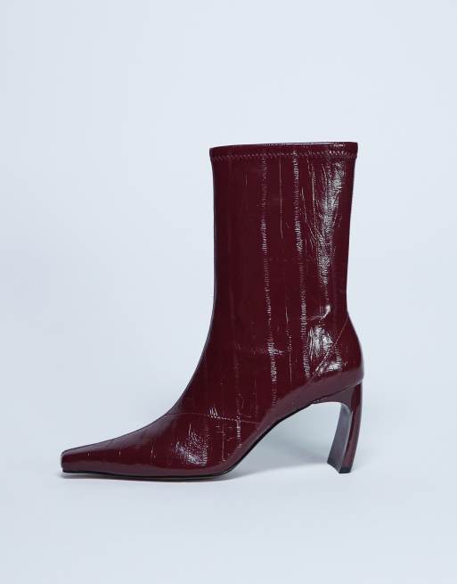 Topshop Pearl pointed toe ankle boots in burgundy eel