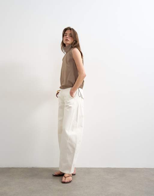 Topshop performance fabric funnel neck drawstring hem top in mocha