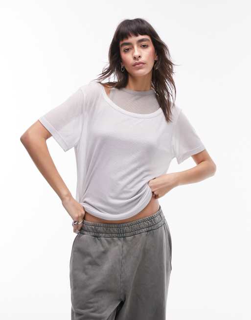 Topshop premium basic sheer double loose fit tee in gray