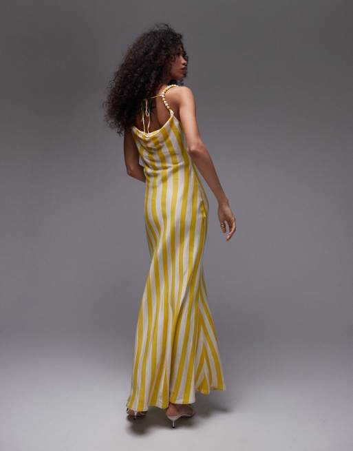 Topshop premium cami slip midi dress with beaded straps in yellow stripe print