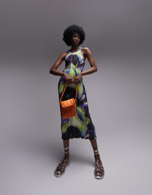 Topshop printed plisse jersey midi dress in multi