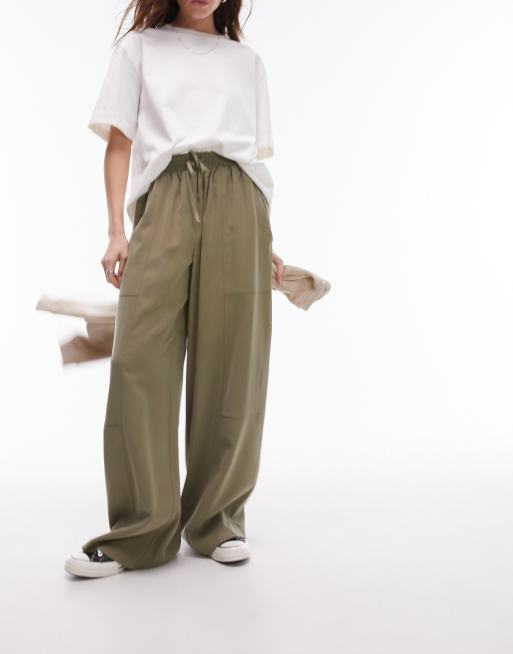 Topshop pull on wide leg pants in khaki