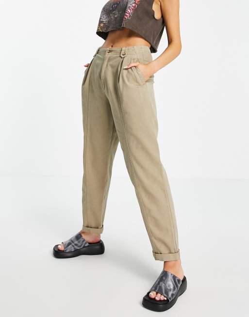 Topshop relaxed peg pants with button tab detailing in stone