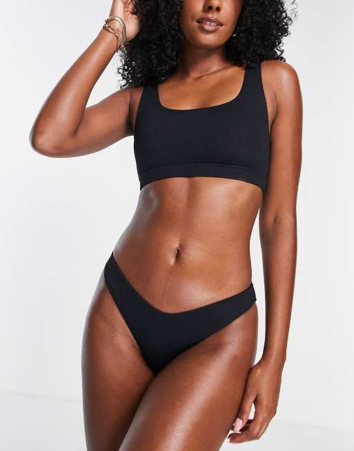 Topshop ribbed crop bikini top in black