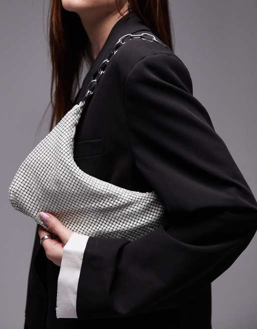 Topshop Sarah chainmail shoulder bag with chain handle in off white