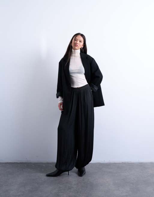 These pants are crafted from drapey satin-style fabric in a plain design. They feature a high-rise waist and deep waistband, and are cut with a balloon leg.Product Code: 150555158