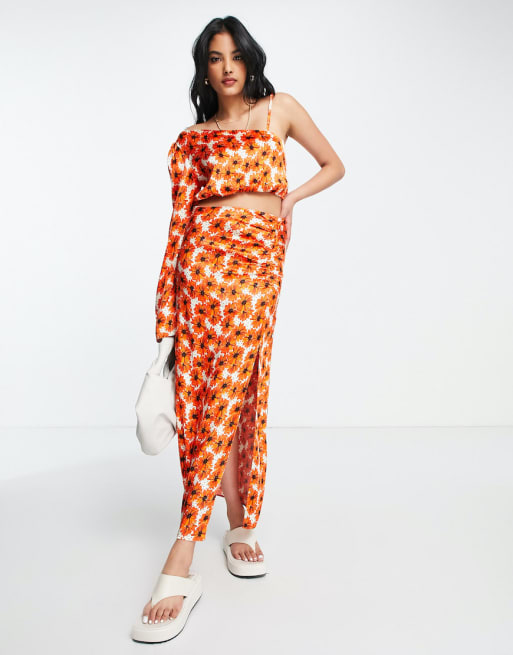 Topshop satin poppy print set in red