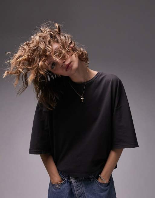 Topshop short sleeve boxy t-shirt in black