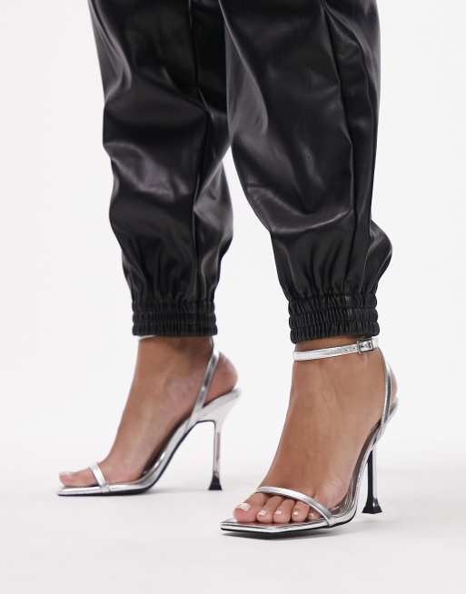 Topshop Sia two part heeled sandals in silver