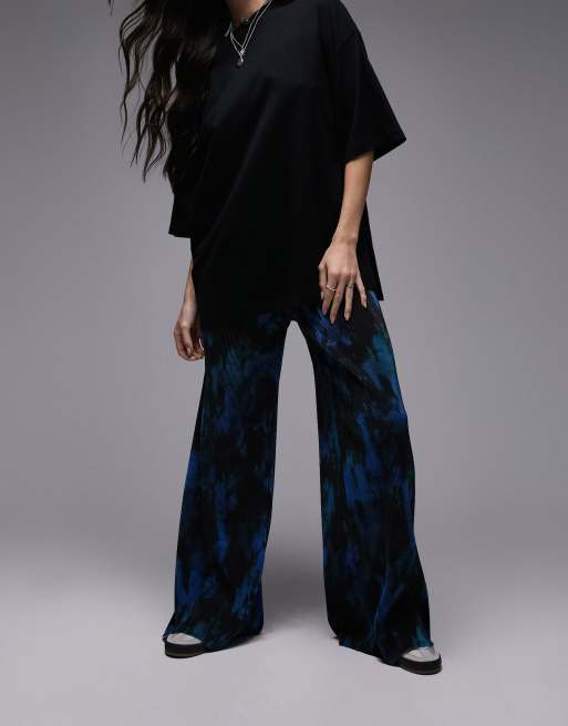 Topshop smudge printed plisse pants in blue
