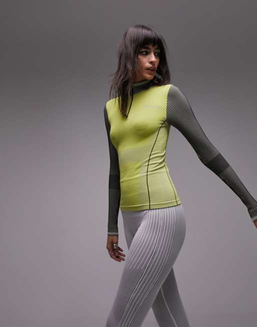 Topshop Sno zip through seamless paneled ski base layer top in yellow