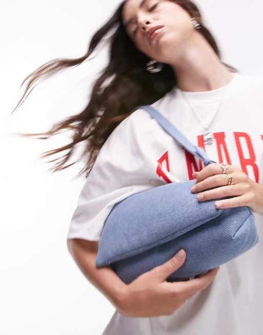 Topshop Spencer asymmetric puffy shoulder bag in blue denim