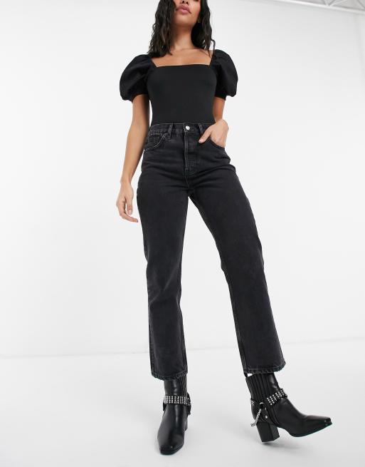 Topshop straight leg jeans in worn black
