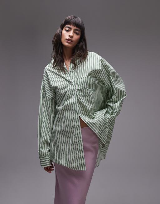 Topshop super oversized shirt in green stripe