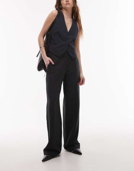 Topshop twill straight leg pants in black